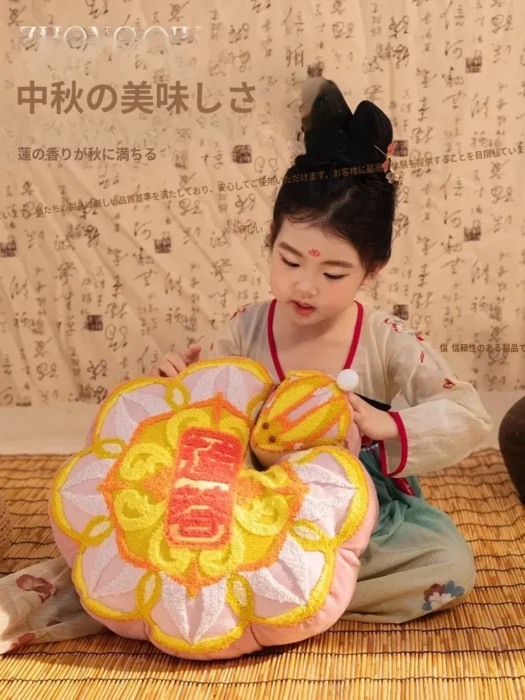 中秋限定!創意月餅抱き枕 - 国潮刺繍デザインのユニークな形、リビングルームにぴったりのソファクッション。友達への贈り物にも最適なクッションカバーセットで、特別なひとときを演出!